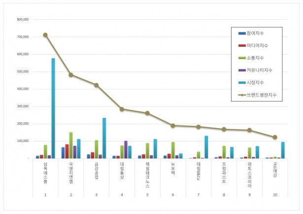 1위, 삼목에스폼 브랜드는 참여지수 16,346 미디어지수 20,852 소통지수 78,028 커뮤니티지수 19,657 시장지수 577,870이 되면서 브랜드평판지수 712,752로 분석됐다. 지난 2월 브랜드평판지수 704,881과 비교해보면 1.12% 상승했다.